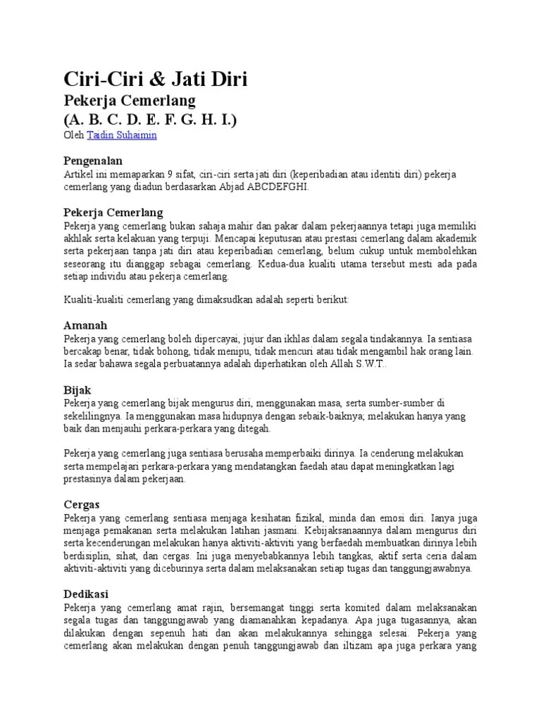 Karangan Ciri Ciri Pekerja Cemerlang / Ciri Ciri Pekerja Cemerlang Idaman Para Majikan